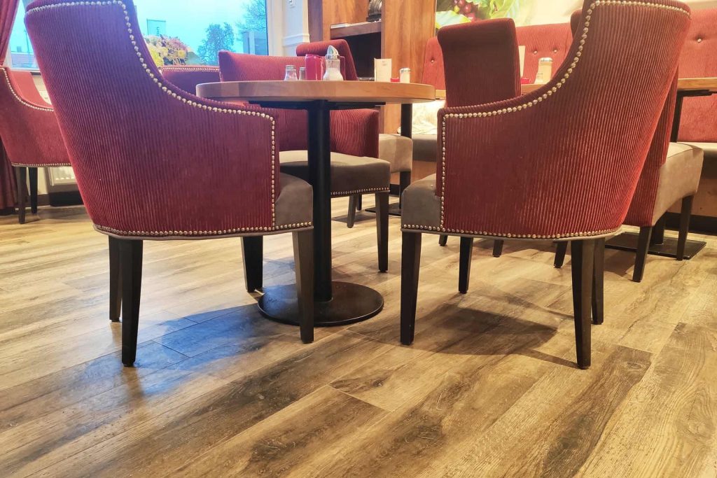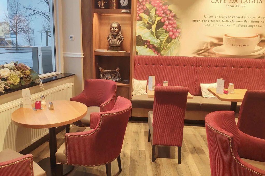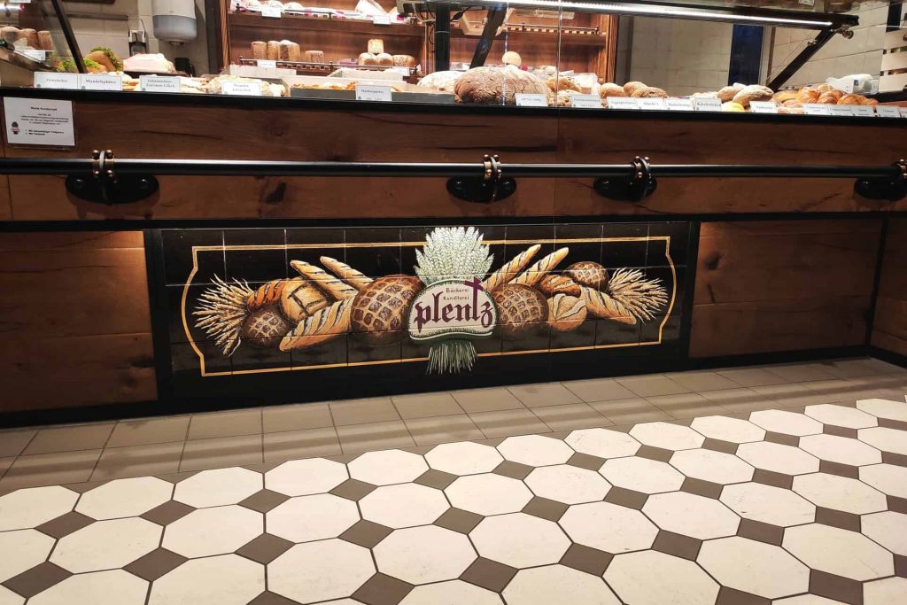 Durch die Kombination aus individueller Fertigung, hochwertiger Materialauswahl und fachgerechter Verlegung entstand ein einladender Innenraum, der traditionelle Caféhaus-Atmosphäre mit funktionaler Beständigkeit verbindet – und so den handwerklichen Anspruch der Bäckerei Plentz unterstreicht.